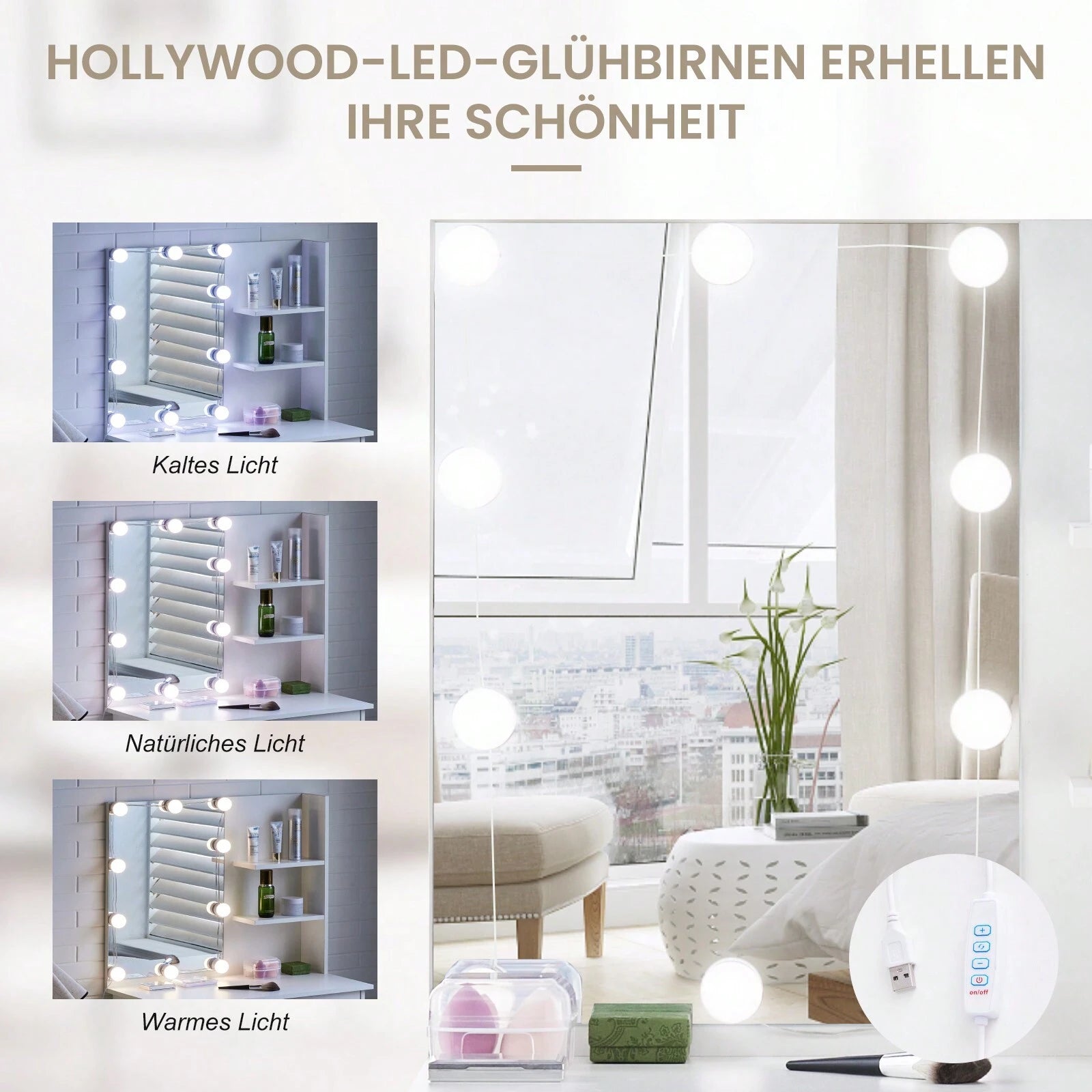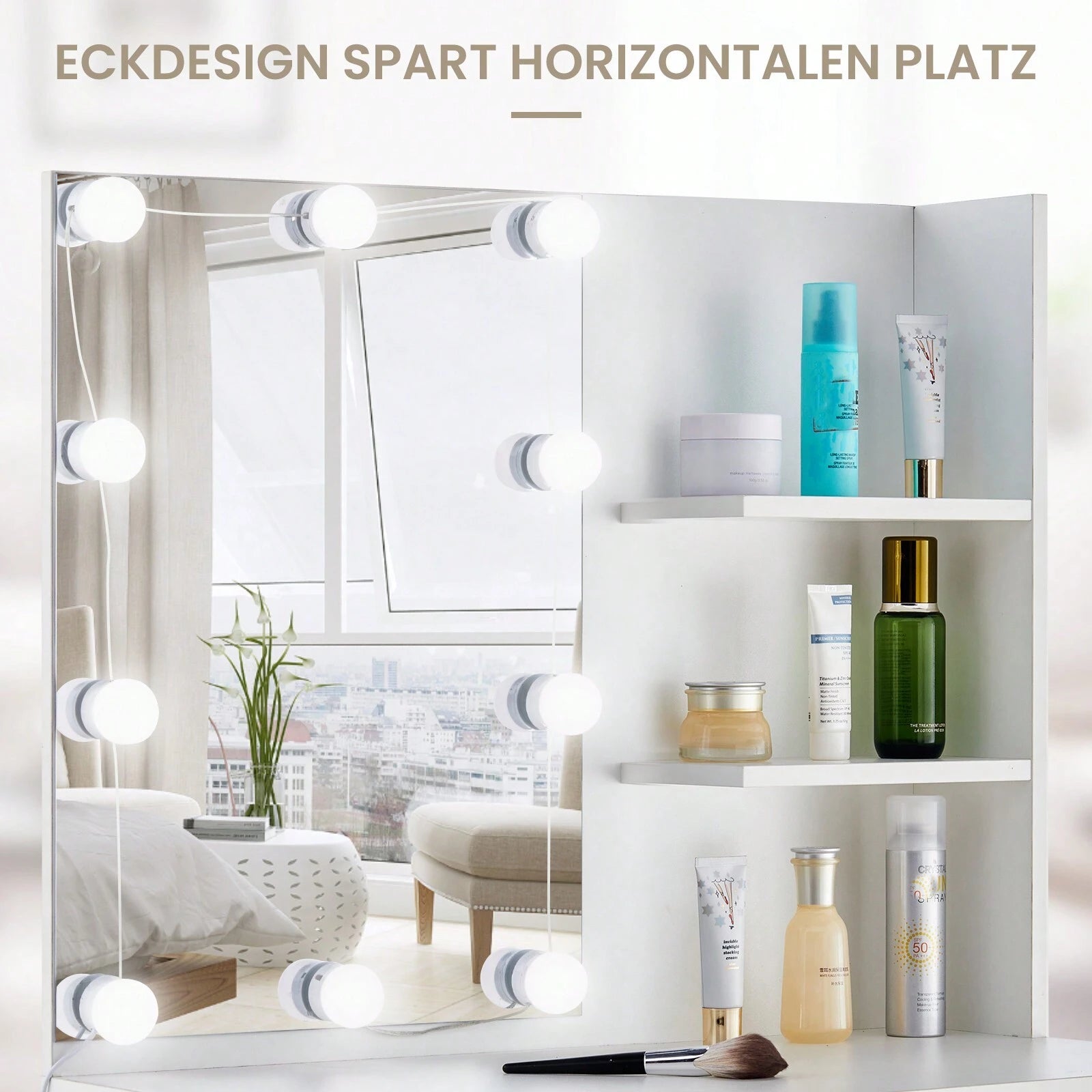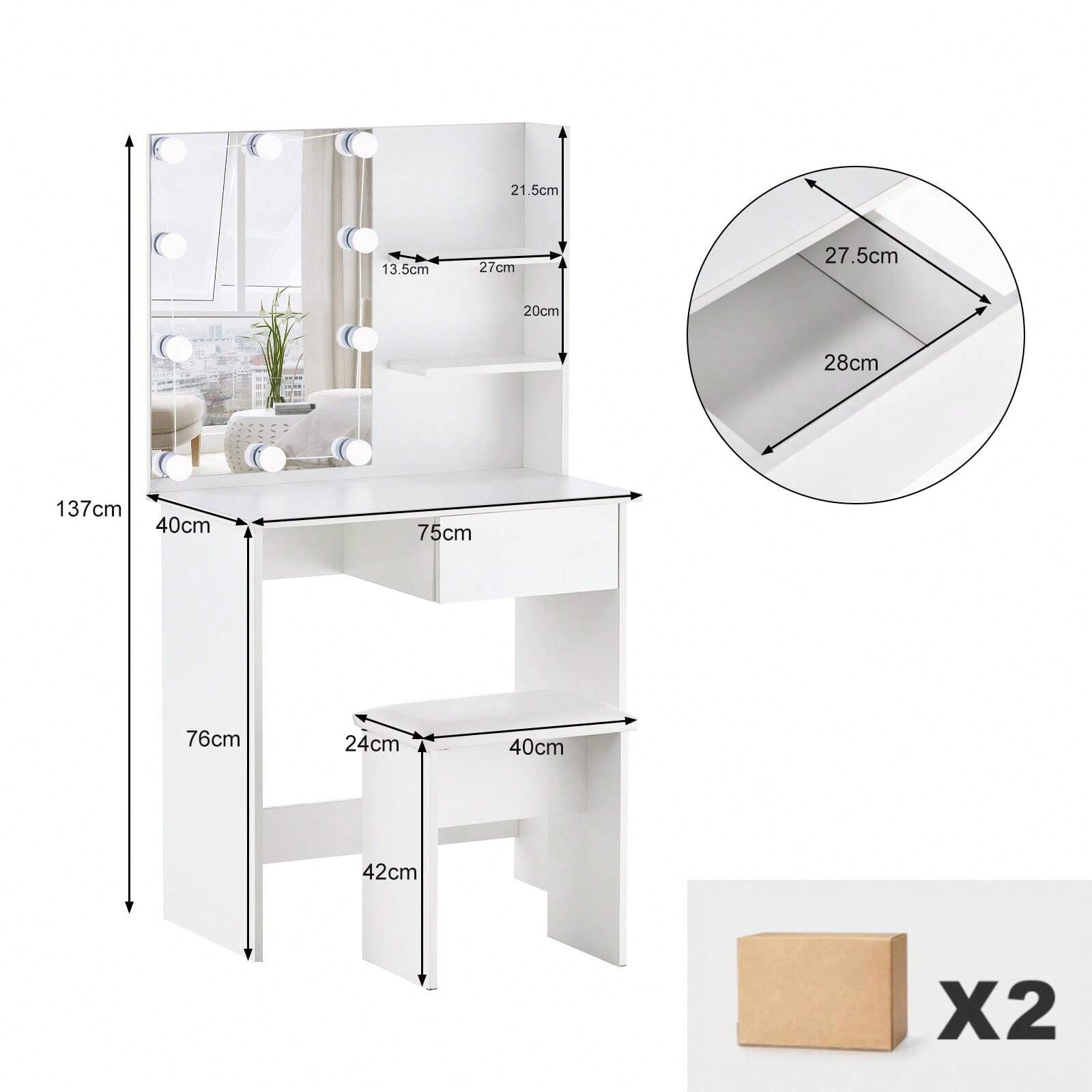 La struttura compatta la rende perfetta anche per camere di dimensioni ridotte. L'illuminazione a LED integrata garantisce una visibilità ottimale durante la skincare e il trucco,