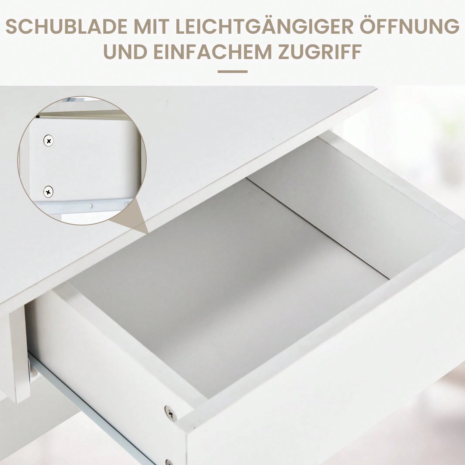 Dotata di un pratico cassetto e tre scomparti aperti, offre ampio spazio di archiviazione per cosmetici e accessori.