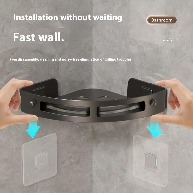 Scaffali Angolari Neri ABS - Scaffale da Parete, Salvaspazio per Bagno e Cucina