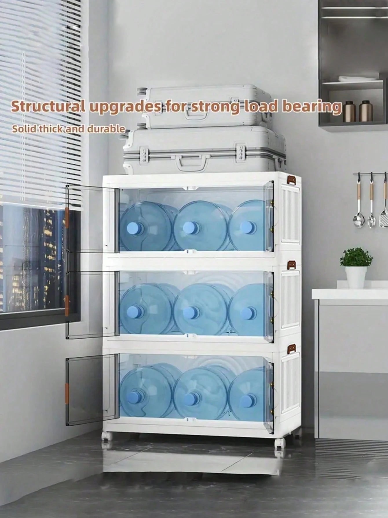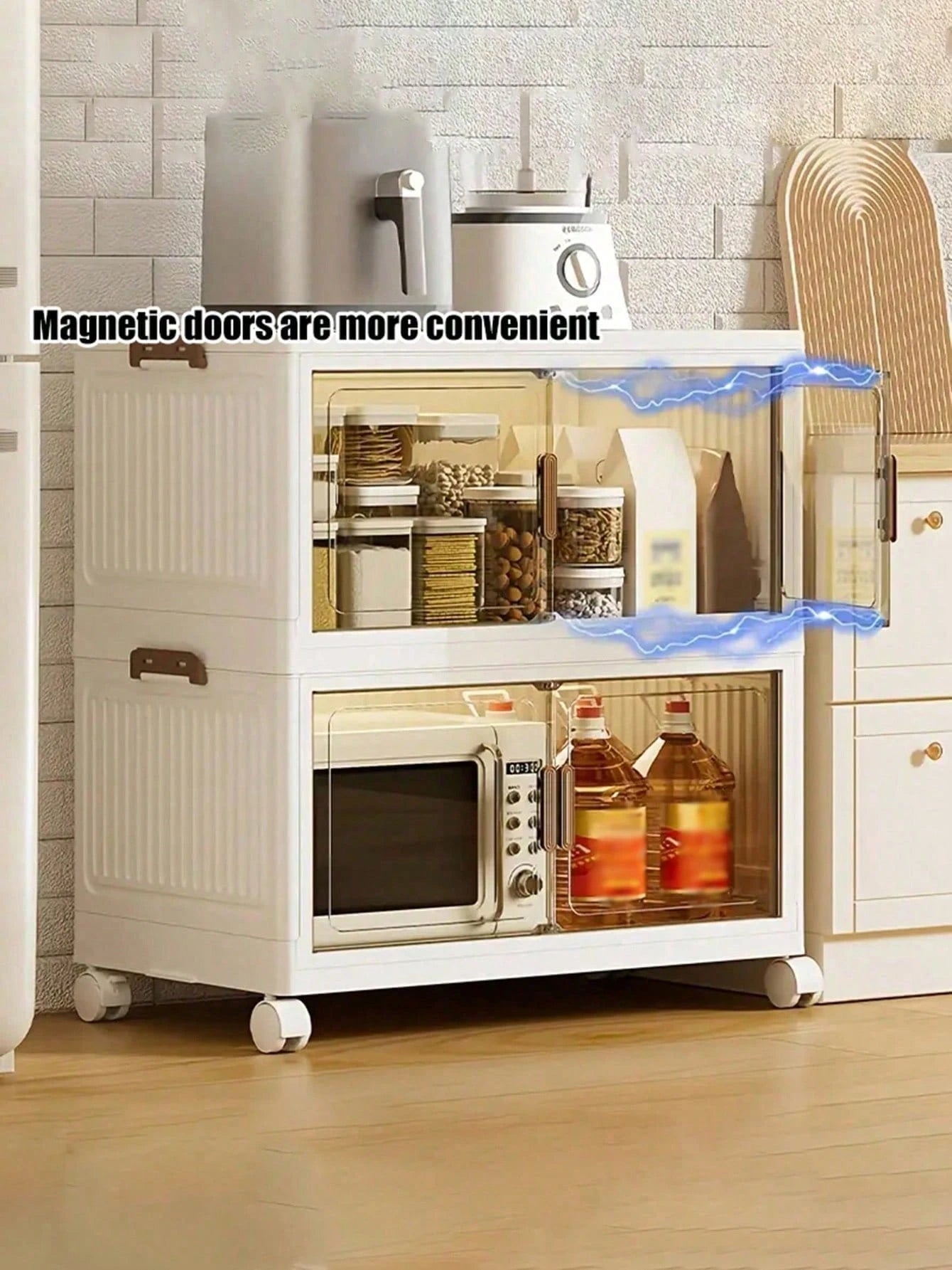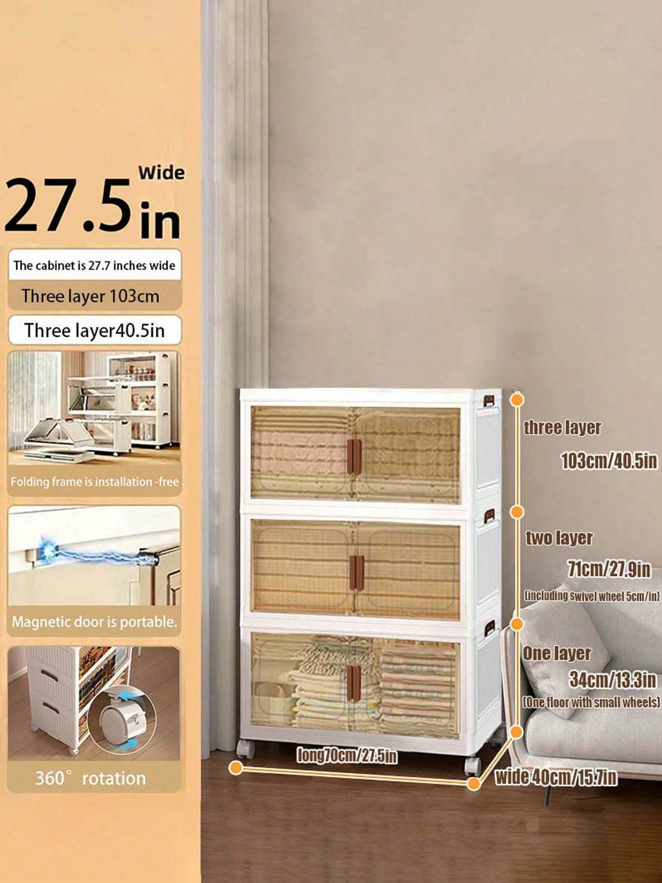 Armadietto in plastica da 70 cm con 3 ripiani, dotato di ruote per una mobilità ottimale. Il design intelligente consente l'impilamento e la pieghevolezza, permettendo di ripiegarlo completamente quando non utilizzato per massimizzare lo spazio disponibile. La struttura leggera facilita il trasporto e la movimentazione, rendendolo ideale per ambienti con...