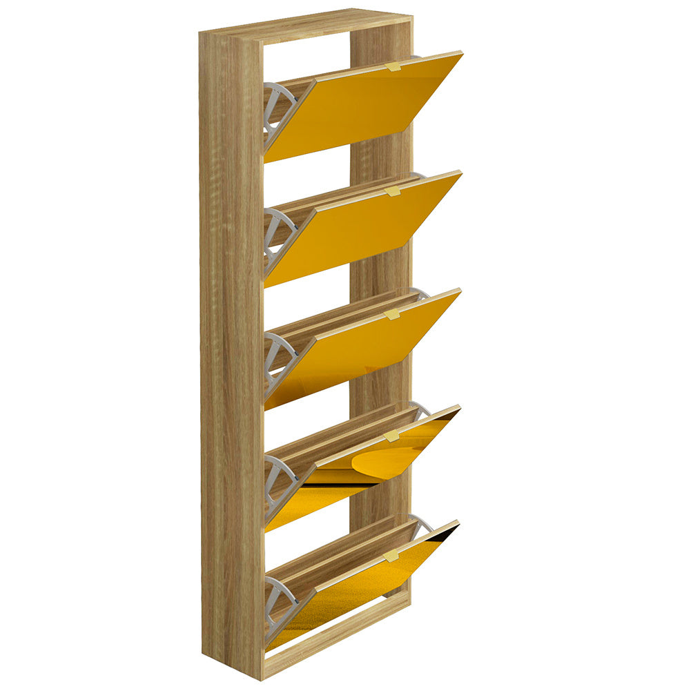 - Con soli 22 cm di profondità, questa scarpiera è la soluzione salvaspazio ideale per corridoi, ingressi e ambienti stretti. Grazie alle 5 ante ribaltabili, offre un'elevata capacità contenitiva senza rinunciare allo stile.