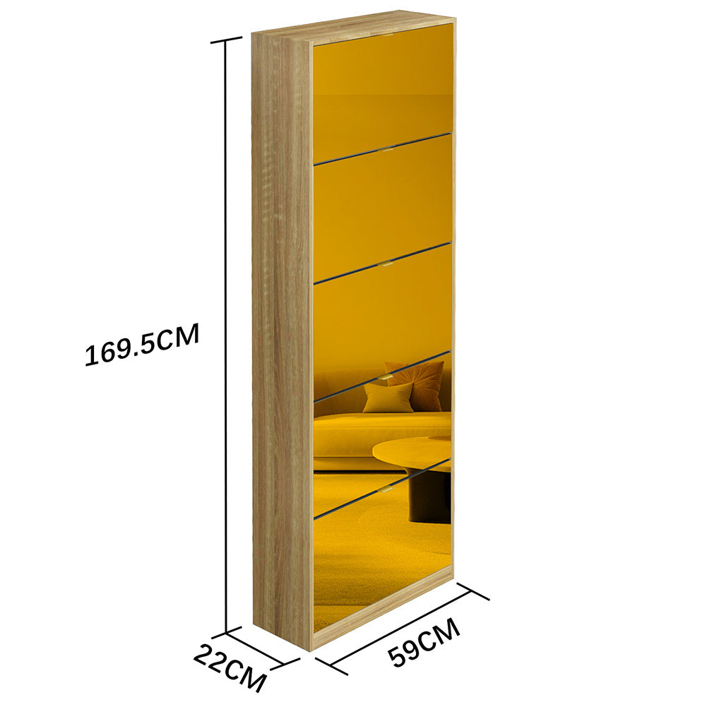 Scarpiera con 5 Ante a Specchio Ribaltabili Porta Scarpe con Ripiani a Ribalta e Maniglie