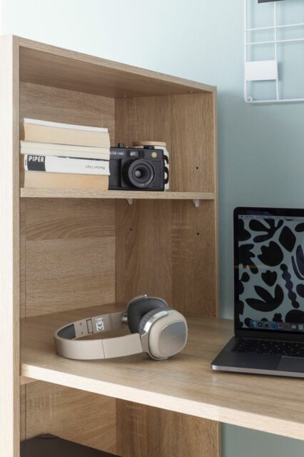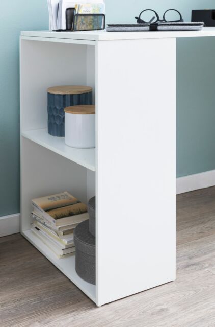 Scrivania dall'aspetto semplice e lineare Nobile tavolo da ufficio con ripiani integrati Dimensioni Larghezza: 120 cm Altezza: 120 cm Profondità: 53 cm Dal pavimento al bordo inferiore del tavolo: 74,5 cm Spessore del piano del tavolo: 1,5 cm Le dimensioni del ripiano variano in quanto possono essere montate a diverse...