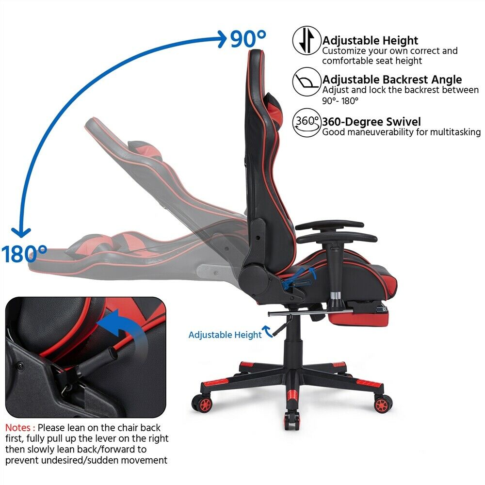 - Comfort Ottimizzato: la nostra sedia da gioco ergonomica è dotata di un cuscino poggiatesta aggiuntivo, cuscino di supporto lombare e un poggiapiedi retrattile. il bracciolo può essere regolato su e giù per un raggio di 7 cm, in modo che sia compatibile con tanti tipi di scrivania.