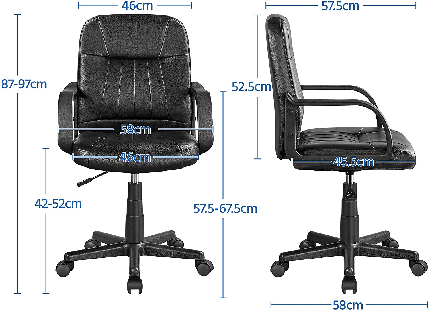 Sedia/Poltroncina da Ufficio Scrivania Girevole Ergonomica in Ecopelle Imbottita Altezza Regolabile