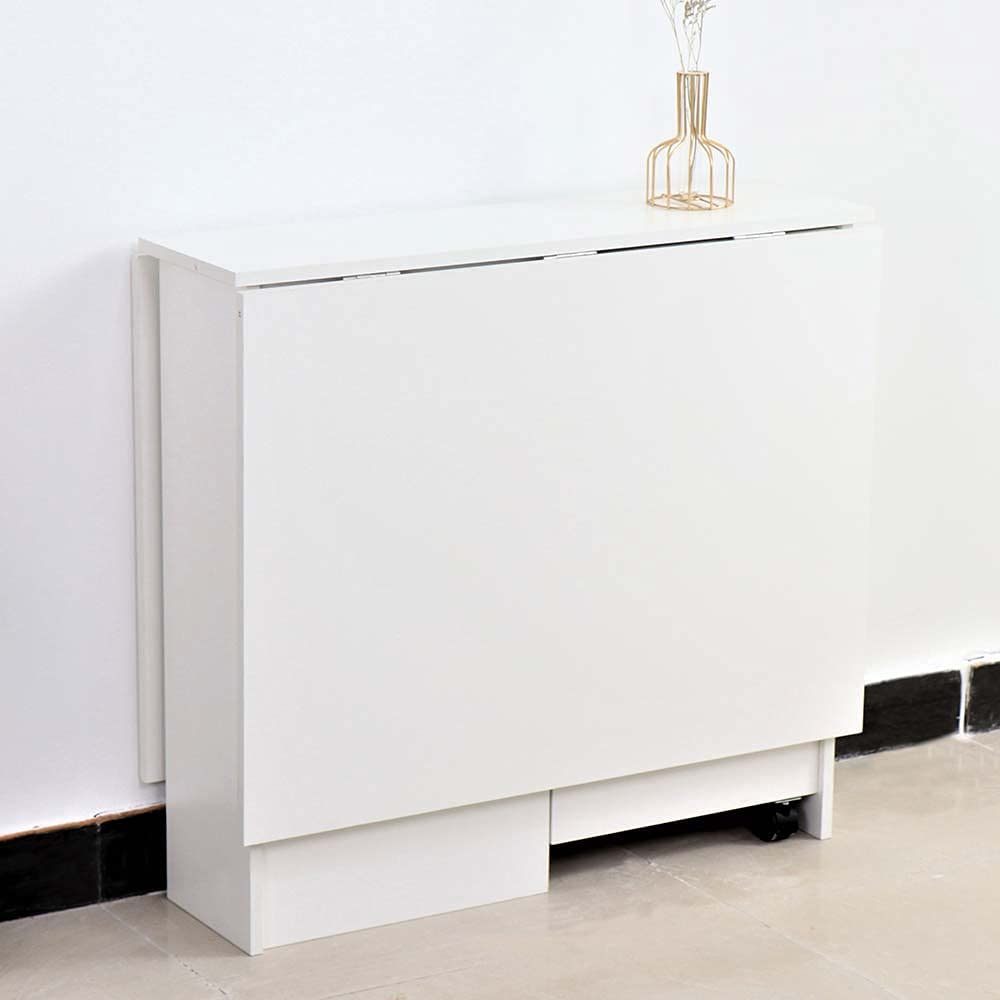 • Quando terminato il suo utilizzo il tavolo può essere tranquillamente chiuso e riposto in qualsiasi spazio occupando il minimo ingombro perfetto come piccolo piano d'appoggio per oggettistica ed elettrodomestici ma sempre pronto per essere riutilizzato quando necessario, inoltre le comode ruote ne permettono un facile spostamento.