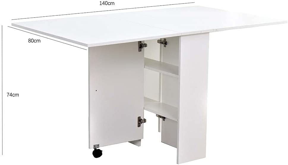• Una volta aperti i 2 ripiani il tavolo lascia spazio ad una pratica libreria a 2 ripiani dove poter riporre accessori da cucina stoviglie ma anche libri, accessori, cancelleria e tutto ciò che vorrai.