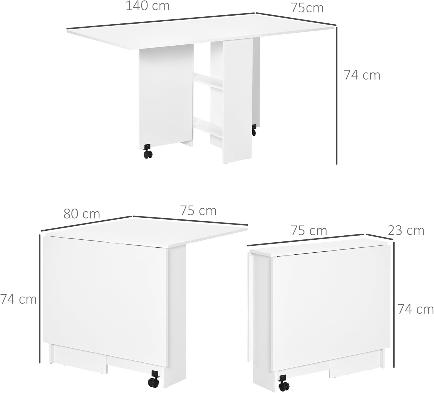 Questo tavolo pieghevole in legno è pratico e versatile, ideale per 3-4 persone. Puoi usarlo sia come tavolo da pranzo, come tavolo consolle o come scrivania. TAVOLO IN LEGNO: Il tavolo pieghevole è costruito in legno con rivestimento in Melammina per renderlo antigraffio e impermeabile.  La finitura superficiale è bianca...