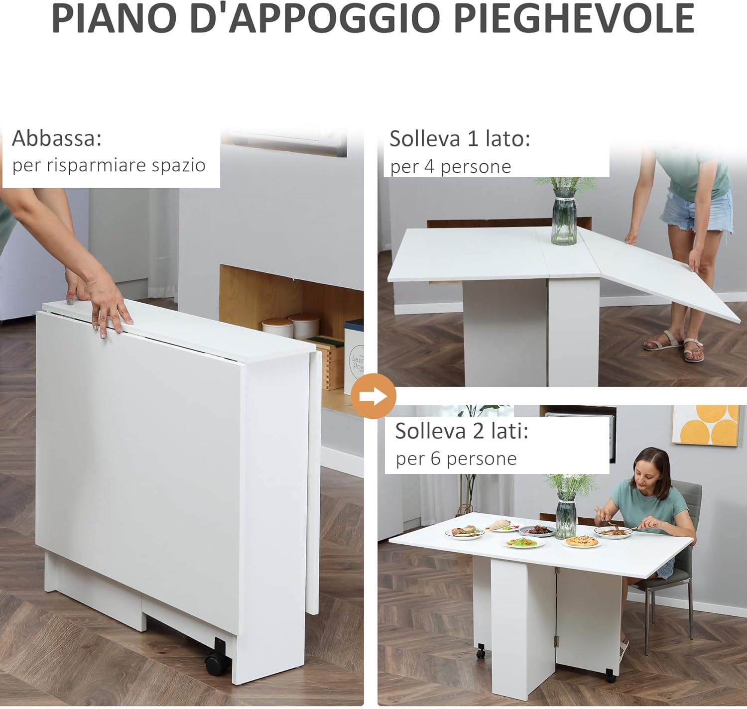 PORTATILE: Grazie alle ruote puoi spostare il tuo tavolo pieghevole in legno comodamente.