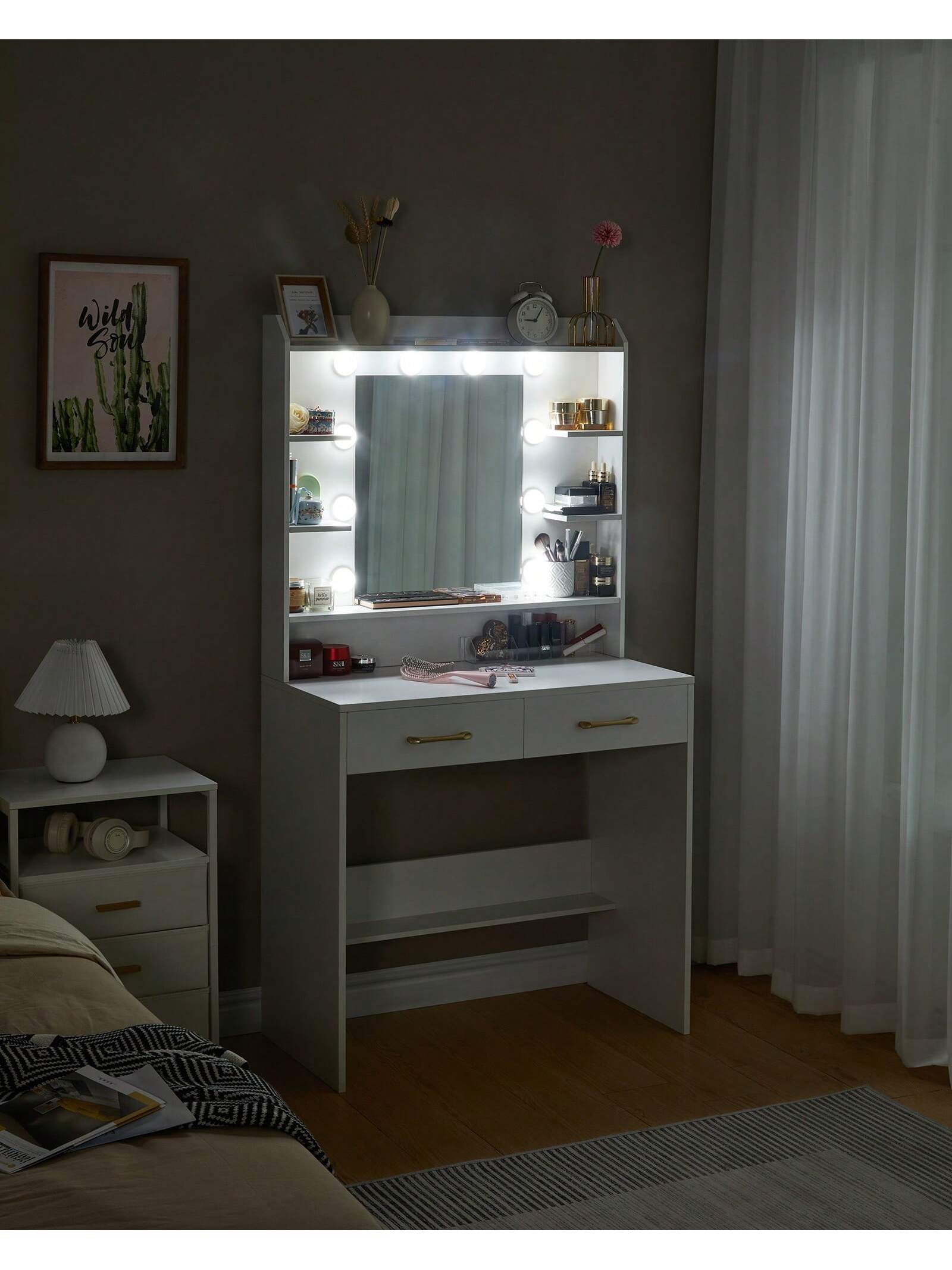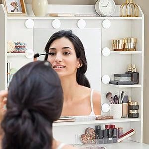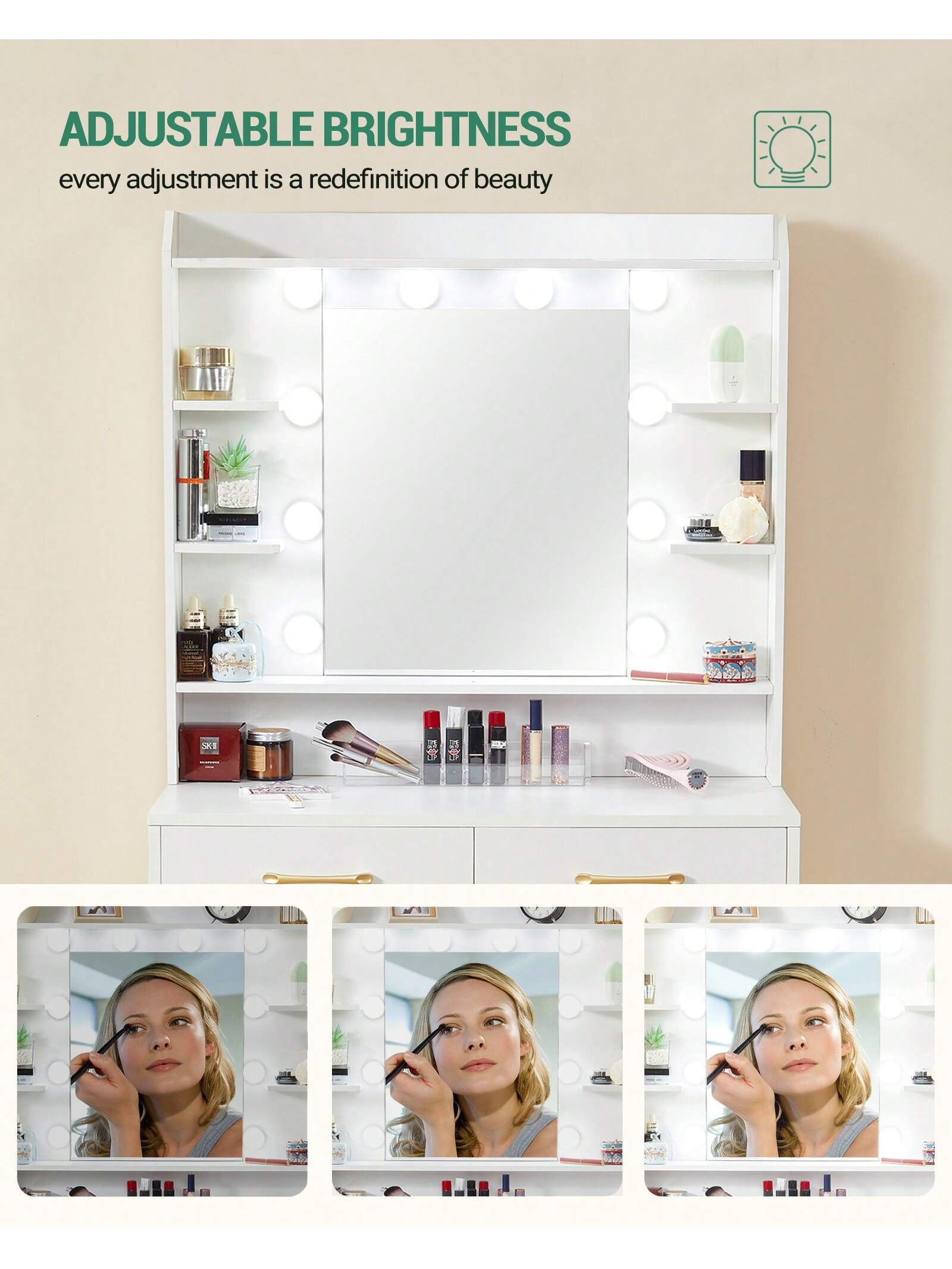 [Luci a LED a luminosità regolabile]Migliorate la vostra routine di bellezza quotidiana con la nostra toletta con luci LED a luminosità regolabile.