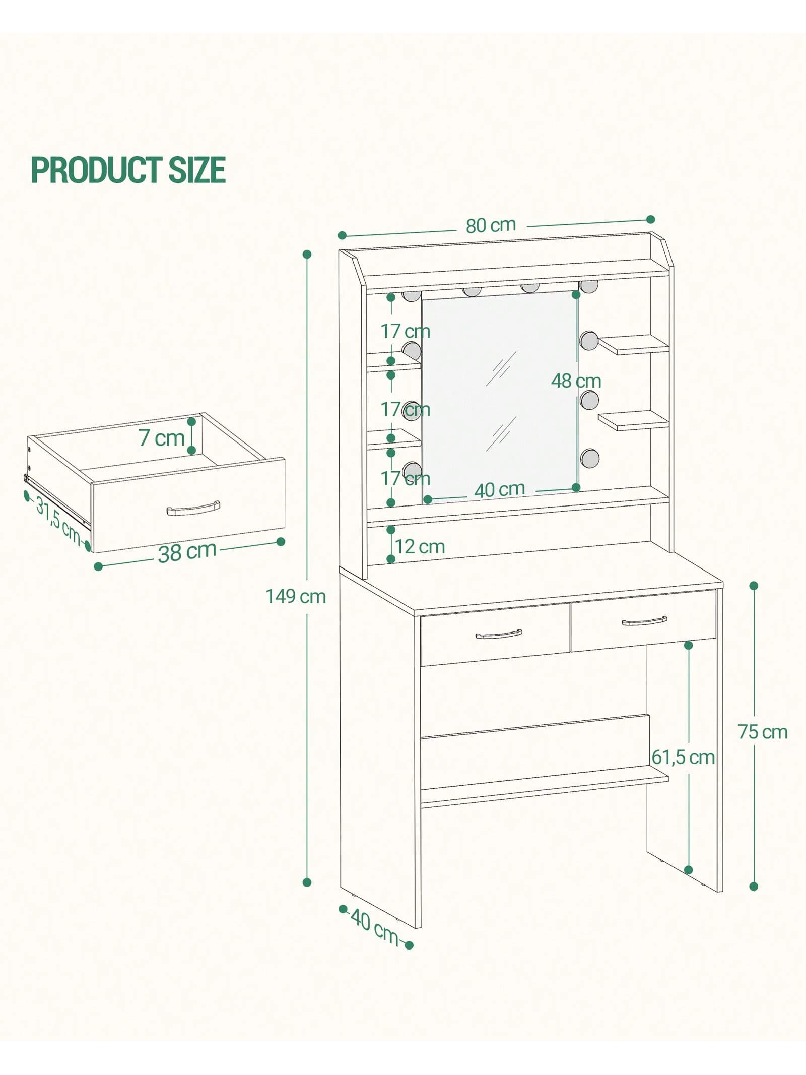 Il suo design senza tempo e le sue caratteristiche pratiche lo rendono adatto a vari ambienti come camere da letto, camerini e persino studi di trucco professionali. Scegliete il nostro tavolo da toeletta per una combinazione di funzionalità ed eleganza.