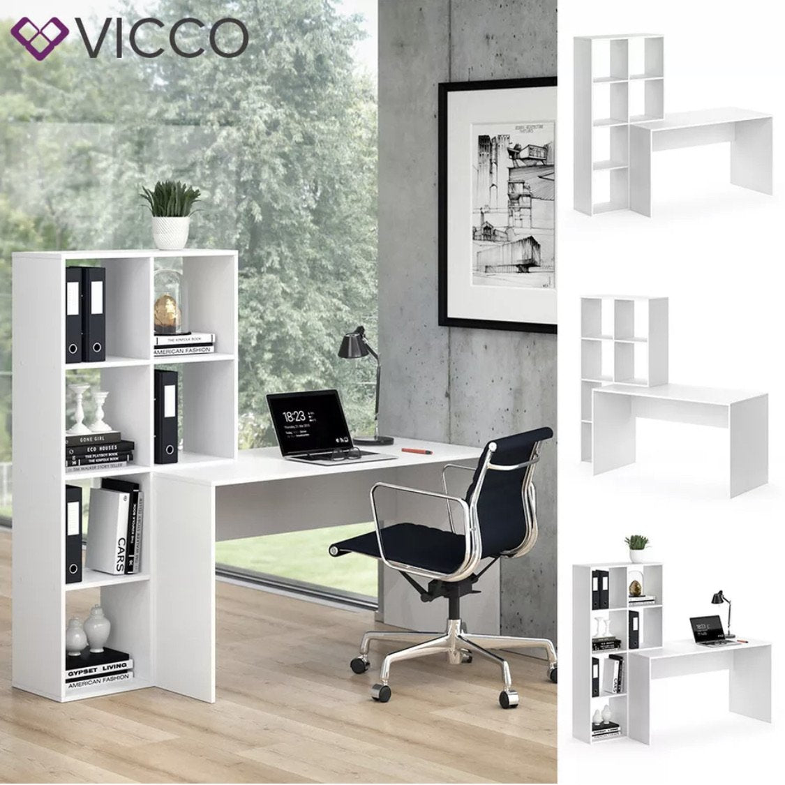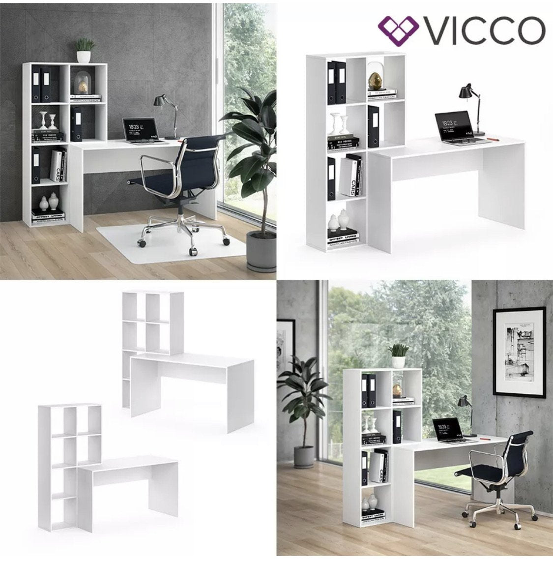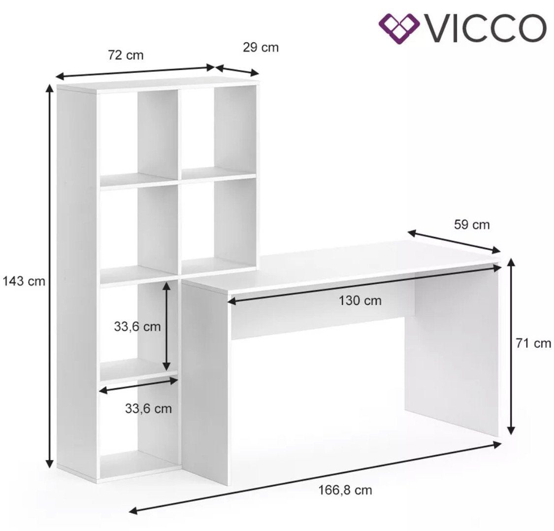 Vicco Scrivania + Scaffale Mara Divisorio Tavolo per computer Tavolo da lavoro
