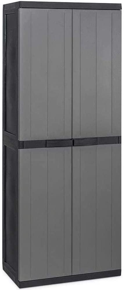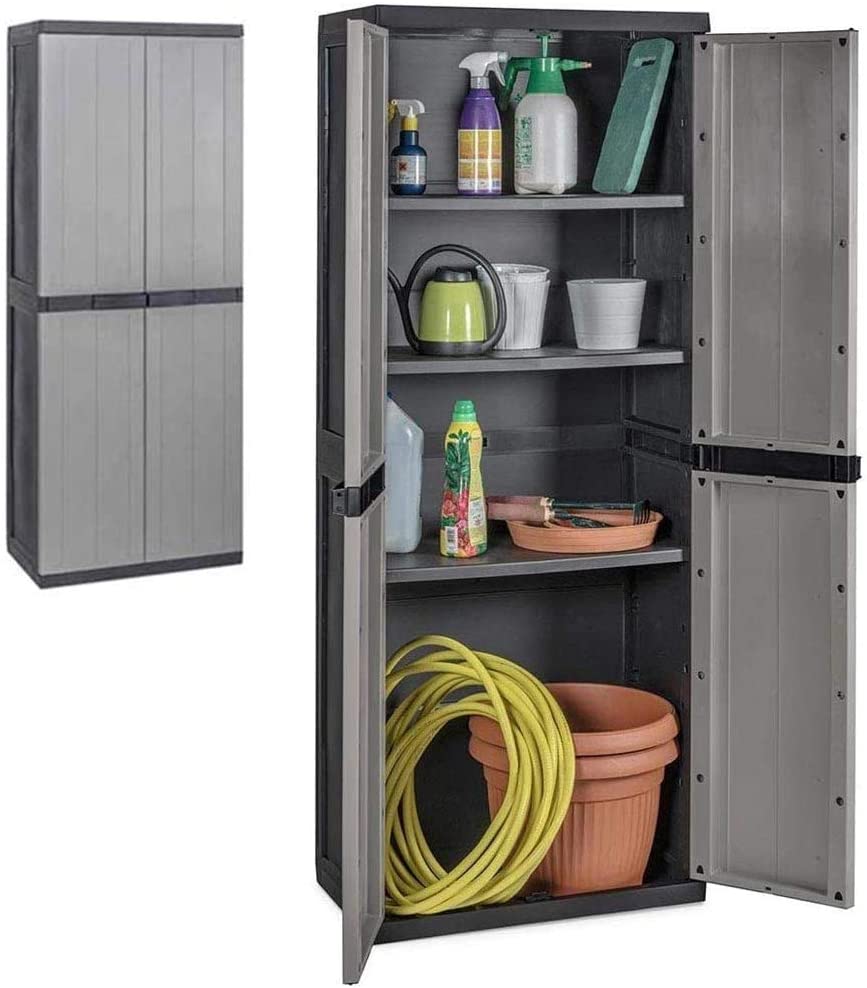 Dal design semplice e minimale in un elegantissimo colore grigio, questo utilissimo armadietto è l'ideale in giardini, terrazzi, garage, cantine e in qualsiasi spazio esterno o interno della casa, inoltre grazie alle sue dimensioni compatte di appena 165 x 65 x 37 cm sarà facile da posizionare anche in piccoli spazi.