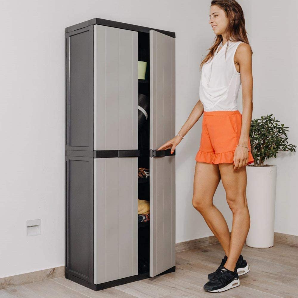 Armadio Armadietto Tuttopiani in Plastica ABS 4 Ripiani Regolabili 2 Ante