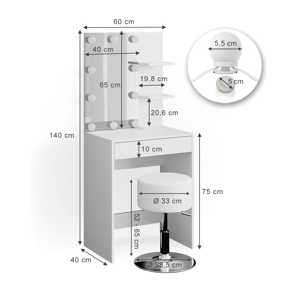 Tavolo da toeletta “ bianco con sgabello e Illuminazione a LED